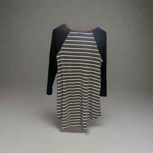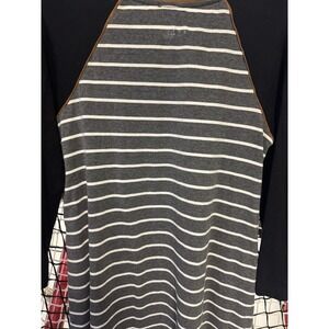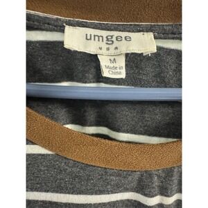 Umgee Women's M Gray White Striped Long Sleeve Tunic Dress Pockets Faux Suede