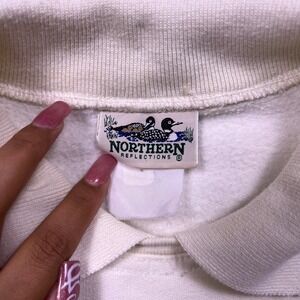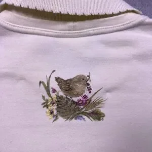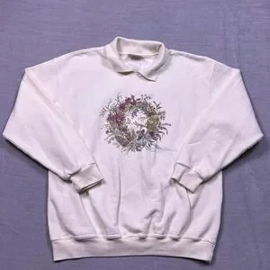 Northern Reflections Women's Cream Floral Bird Embroidered Collared Sweatshirt L