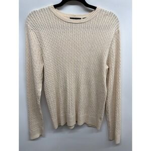 Jeanne Pierre Womens Cream Classic Cable Knit Fisherman Sweater Large NWOT