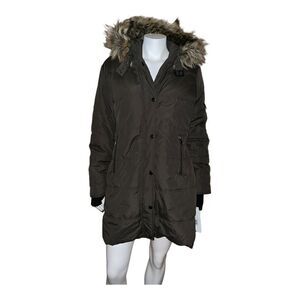 Maralyn & Me Juniors' Faux-Fur Trim Hooded Puffer Coat Olive Green XXL NWT