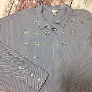 A New Day Striped Rhinestone Embellished Button Up Top.