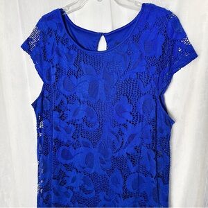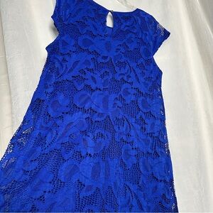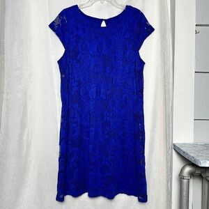 Ronni Nicole Blue Floral Crochet Lace Dress Knee Length Feminine Holiday Sz 16