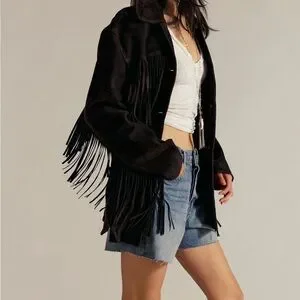 black vegan suede fringe jacket- size medium. oversized look. NWT. originally $168. dm for more info