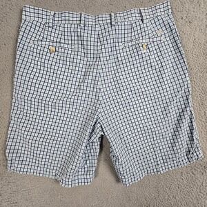 Peter Millar Crown Sport Golf Shorts Mens 36 Blue Check Performance Stretch