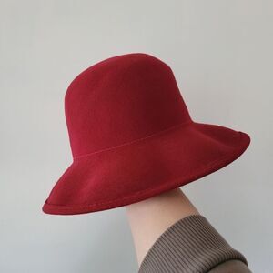 Vintage 100% Wool Felt Bloomingdale's Elegant Red Women's Hat Short Brim