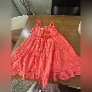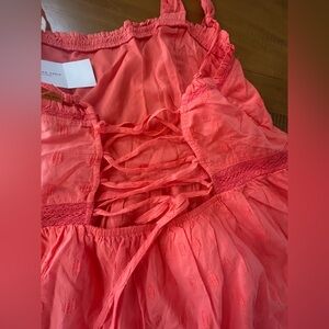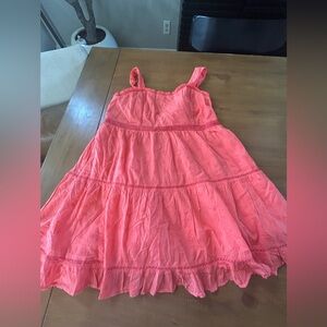 NWT AEO Sleeveless Coral Tiered Eyelet with lace Mini Dress