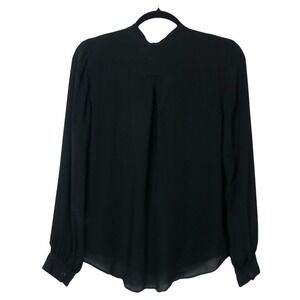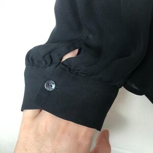 L'Agence Womens 100% Silk Pleated V-Neck Button Down Size M Black Quiet Luxury