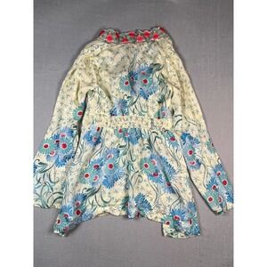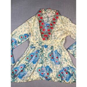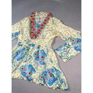 Sundance Silk Floral Embroidered V Neck Tunic Top Blouse Womens XS