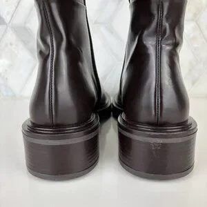 39/9 Dark Brown Walnut Round Toe Block Heel Wide Sole Knee High Pull On Zip Boot