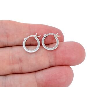 Classic hoop earrings in sterling silver with a smooth, polished finish and a classic circular profile. Estate sterling silver hoops, minimalist design, lightweight and easy for everyday wear or simple layering. Quiet shine and a clean, unfussy look rather than bold flash.