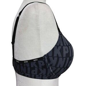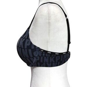 This push-up bra from Victoria's Secret Pink offers support and style with its bold logo design, adjustable straps, and soft black material.