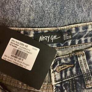 Nasty Gal NWT Blue Acid Wash Distressed Rip High Rise Straight Leg Jeans Size 6