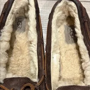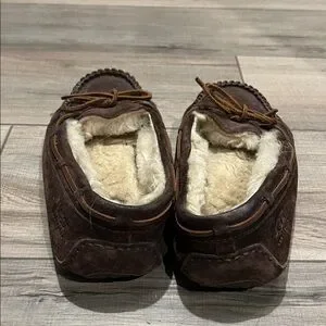 Used and pre loved dark brown moccasins by UGG. Soft lining for ultimate comfort. Ideal for relaxation. No damage outside of being worn down from wear.