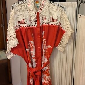 Super cute Farm Rio maxi! Versatile styling- belted or not. Amazing embroidery! So unique, I haven’t seen another one. Worn only once. Excellent condition.