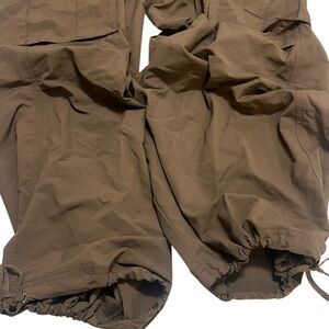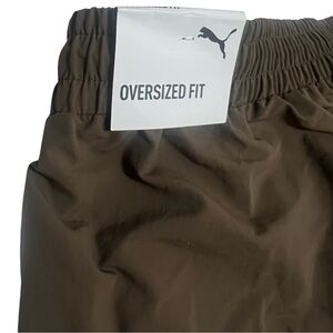 Like swishy parachute pants, these have Wild Cats graphic on both pockets. Oversized baggy fit with cinching pulls at the bottom of both pant legs. Made of 100% Nylon Recycled