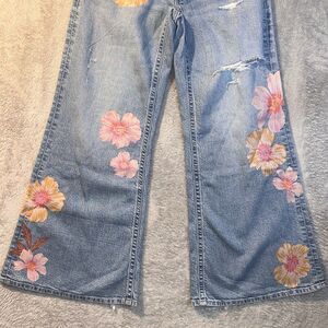 RARE American Eagle Wide Leg Floral One Of A Kind Denim Jeans Size 4