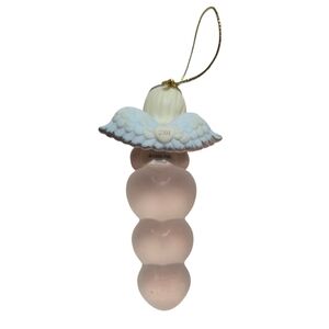 Charming angel ornament. Perfect for holiday decor. Bottom is white not pink the picture can't catch the clear white colour. Vintage. Rare