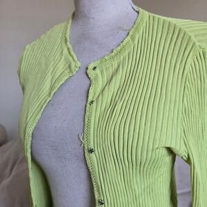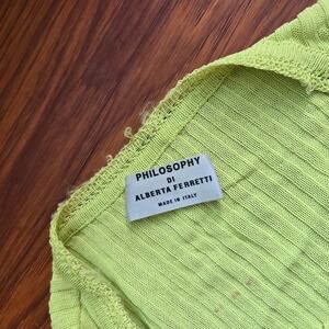 Philosophy Di Alberta Ferretti Sz 8 Ribbed Knit Yellow Stretch Cardigan Sweater