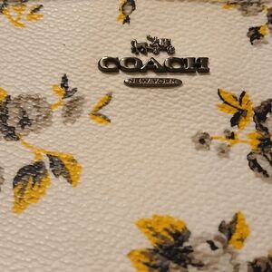 🌼Coach Floral Wristlet White Yellow Gray Leather Zip Pouch