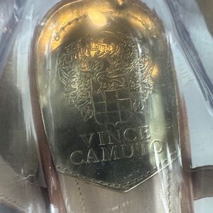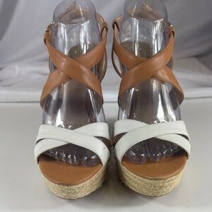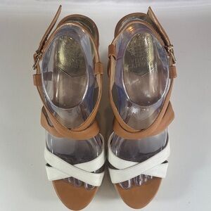 Vince Camuto High Heel Wedges Tan Camel White OpenToe Leather Summer Shoes