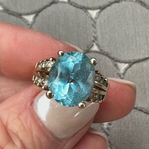 3.7 carat blue topaz ring with 12 diamonds. Size 5.5