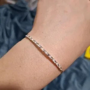 Marked PM 925 for sterling silver. This is a timeless, minimalist piece that looks stunning worn alone or stacked with other bracelets.