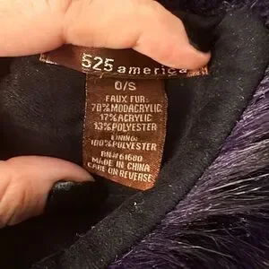Faux Fur: 70% modacrylic, 17% acrylic, 13% polyester.