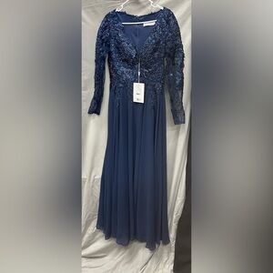 Mac Duggal 20388 NWOT EMBROIDERED ILLUSION LONG SLEEVE V NECK G…