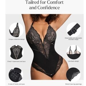 NWT Popilush Lace Shapewear Bodysuit – V-Neck Tummy Control Thong –X Large
