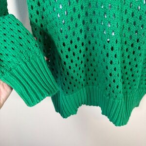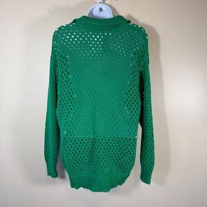 Keywords: Aerie sweater, green knit top, holiday, mesh pullover, collared shirt, long sleeve knit, lightweight sweater, boho knit, casual top, summer knit, beach cover up, preppy knit, relaxed fit top