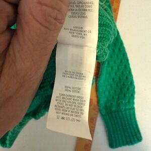 Dive into vibrant style with this striking Aerie green mesh sweater. The open-knit design creates an airy, breathable feel perfect for layering or a standalone statement piece. Its classic collared neckline and relaxed fit offer a chic blend of comfort and fashion. Imagine this sweater adding a pop of color to your casual outings or a playful touch to your beachside strolls.