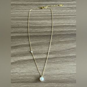 This elegant necklace features a delicate gold chain adorned with a lustrous pearl, perfect for adding a touch of sophistication to any outfit. Stainless steel, 18K gold plated