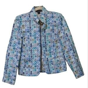Linda Allard/ Ellen Tracy collab geometric print silk cotton blend blazer 4P