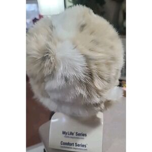 Pottery Barn Teen Faux Snow Leopard Fur Trapper Hat Pom Poms White One Size