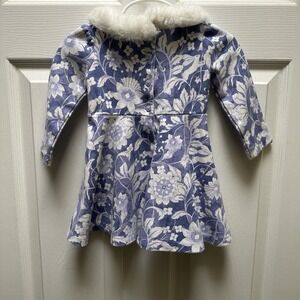 Janie and Jack Baby Girl Dress Floral Blue White Faux Fur Collar 12 to 18 Months