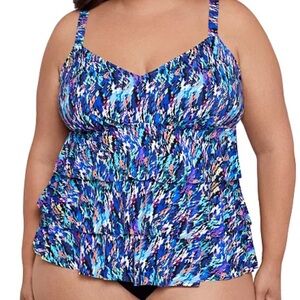 Plus Size Printed Tiered Fauxkini One-Piece Swimsuit