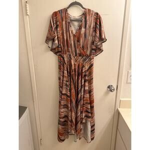 Soft Surroundings Womens Orange Stripe Asymmetrical Hem Dress Fairy Earthy Fall