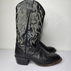 Tony Lama Black Smooth Ostrich Western Cowboy Boots