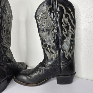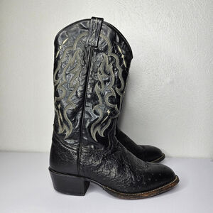 Tony Lama Black Smooth Ostrich Western Boots Men's 8 EE Double Wide