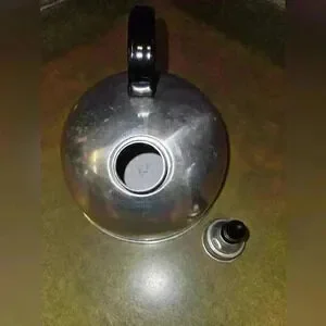 Comet Aluminum tea kettle. Made for the stove top. Previously used, there is a few dings, but in good vintage condition. Very shiny and unused looking, but there are some scuffs and dents. Please look thoroughly at the photos, as they are part of the description.