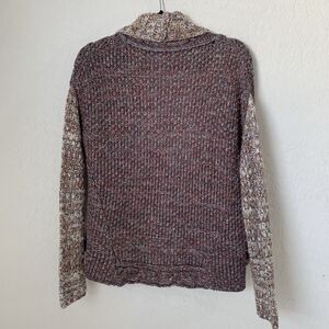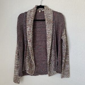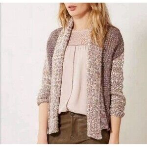 Anthropologie Moth Cardigan Sweater S Gray Tan Red Shimmer Knit Open Front Boho
