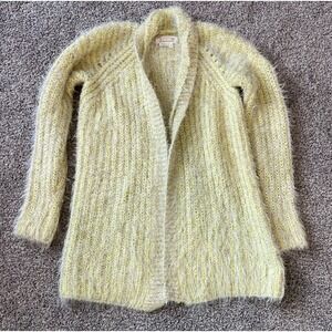 Anthropologie Yellow Larkin Shimmer Fuzzy Cardigan Sweater Size XS Cozy