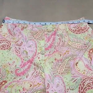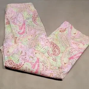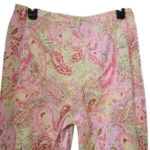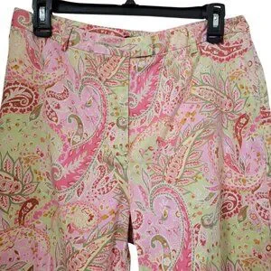 Charter Club Golf Size 10 Pistachio Green and Pink Paisley Ankle Length Pants