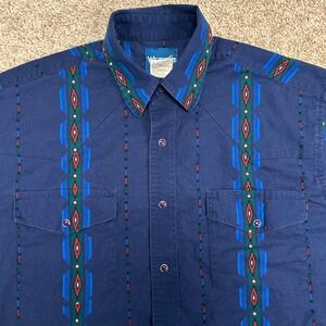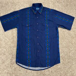 Vintage Wrangler Western Shirt Pearl Snap Aztec Southwestern Stripe Men Medium