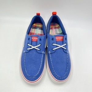 Sperry men's STS23303 3-Eye Bahama blue canvas slip on boat shoes / deck shoes / loafers. Men's size 8.5.