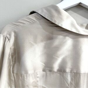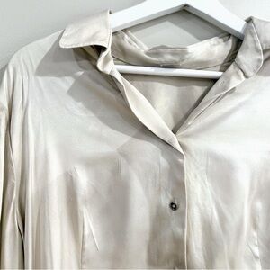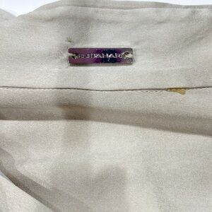Elie Tahari Women Silk Blouse S Ivory Abstract Print Fringe High-Low Quiet Luxur