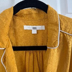 Jonathan Simkhai Yellow Leopard Print Button Satin Silk Shirt Women's Size 14
