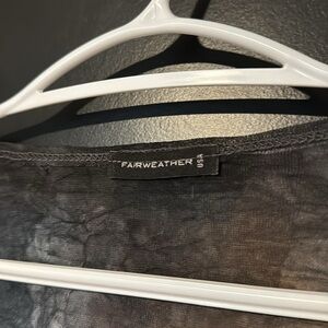 This top is so cute! It is stretchy, and semi sheer more so in the mid drift and arms there is a double layer in the breast area. It has a really cool tie-dye type pattern through with open bell sleeves. There is no material tag or a size tag, it’s estimated to be a size medium based on measurements below.