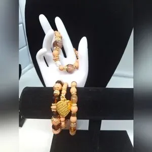 Enhance your style with this elegant beaded bracelet set. Featuring warm brown and gold tones, these bracelets add a touch of sophistication to any outfit. Perfect for any occasion.