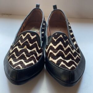 Adrianna Papell Lennox Calf Hair Chevron Pointed Toe Loafers Leather 7.5 37.5